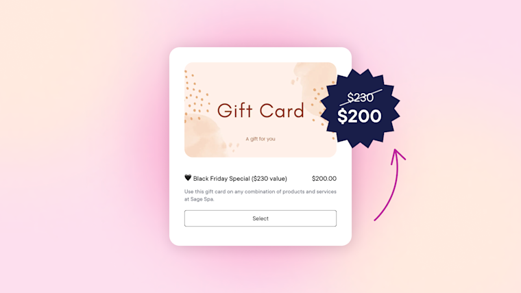Want to run your annual Black Friday promotion every year on November 25th? No problem. Have a Valentine's Day couple's massage promo that you've been waiting to launch? Break out the champagne! Create, promote, and run your gift card promotions when you want, and discount them as you see fit.