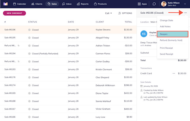 To reopen a sale, you must be an Admin user, or you must have the Can start a checkout and modify sales permission enabled in Staff Member settings.