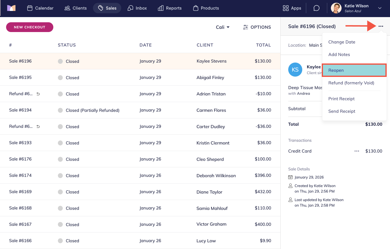 To reopen a sale, you must be an Admin user, or you must have the Can start a checkout and modify sales permission enabled in Staff Member settings.