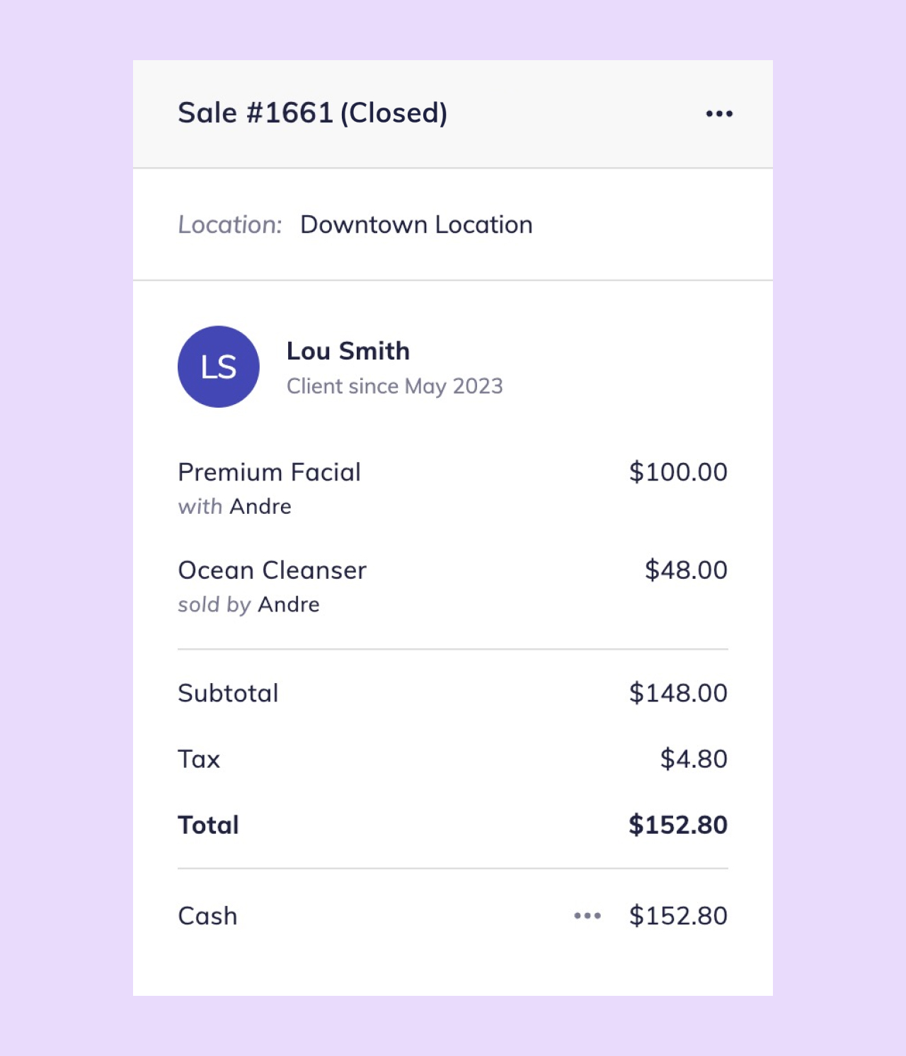 Learn how you can also split payments between multiple payment methods. For example, a client may want to pay $20 in cash and then pay the rest with a different payment method.