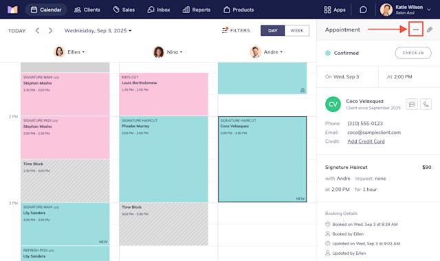 In the appointment details, select Cancel/Delete from the "..." menu.