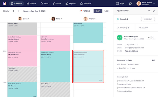 Depending on your settings, the appointment will either be removed from the calendar or appear faded on the calendar. Learn how to customize what type of canceled appointments are displayed on the calendar.