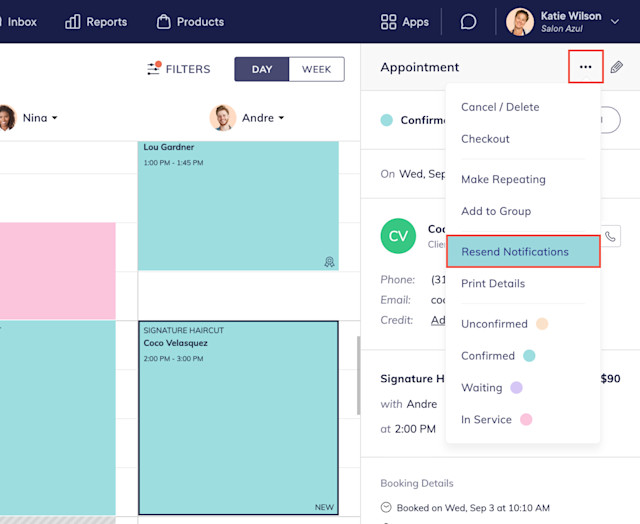 If you need to resend notifications to the client, select Resend Notifications from the "..." menu.