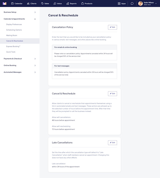 Once you add your cancellation policy, it will be included in various automated emails and text messages, and other locations such as online booking.