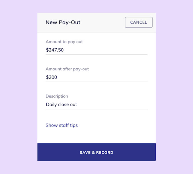 Amount to pay out: Amount you are taking out of the drawer.