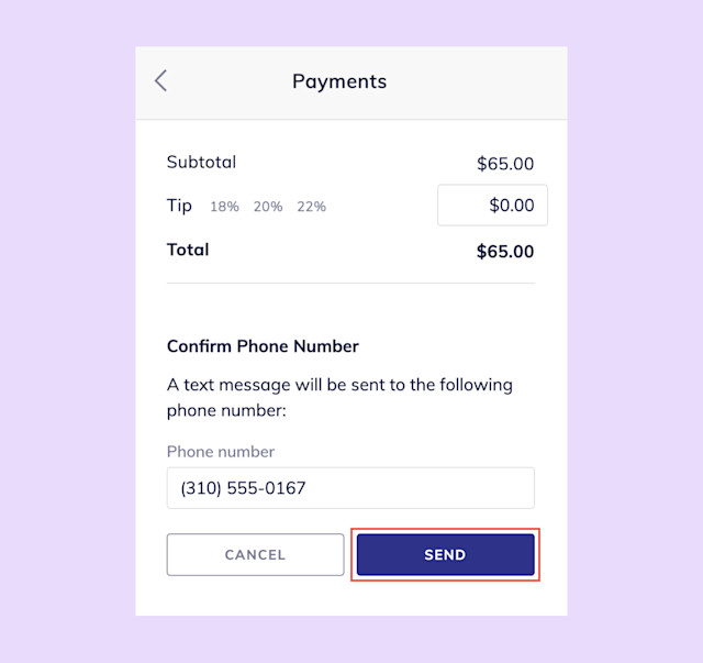 Confirm the client’s phone number or enter a different phone number. Select Send.
