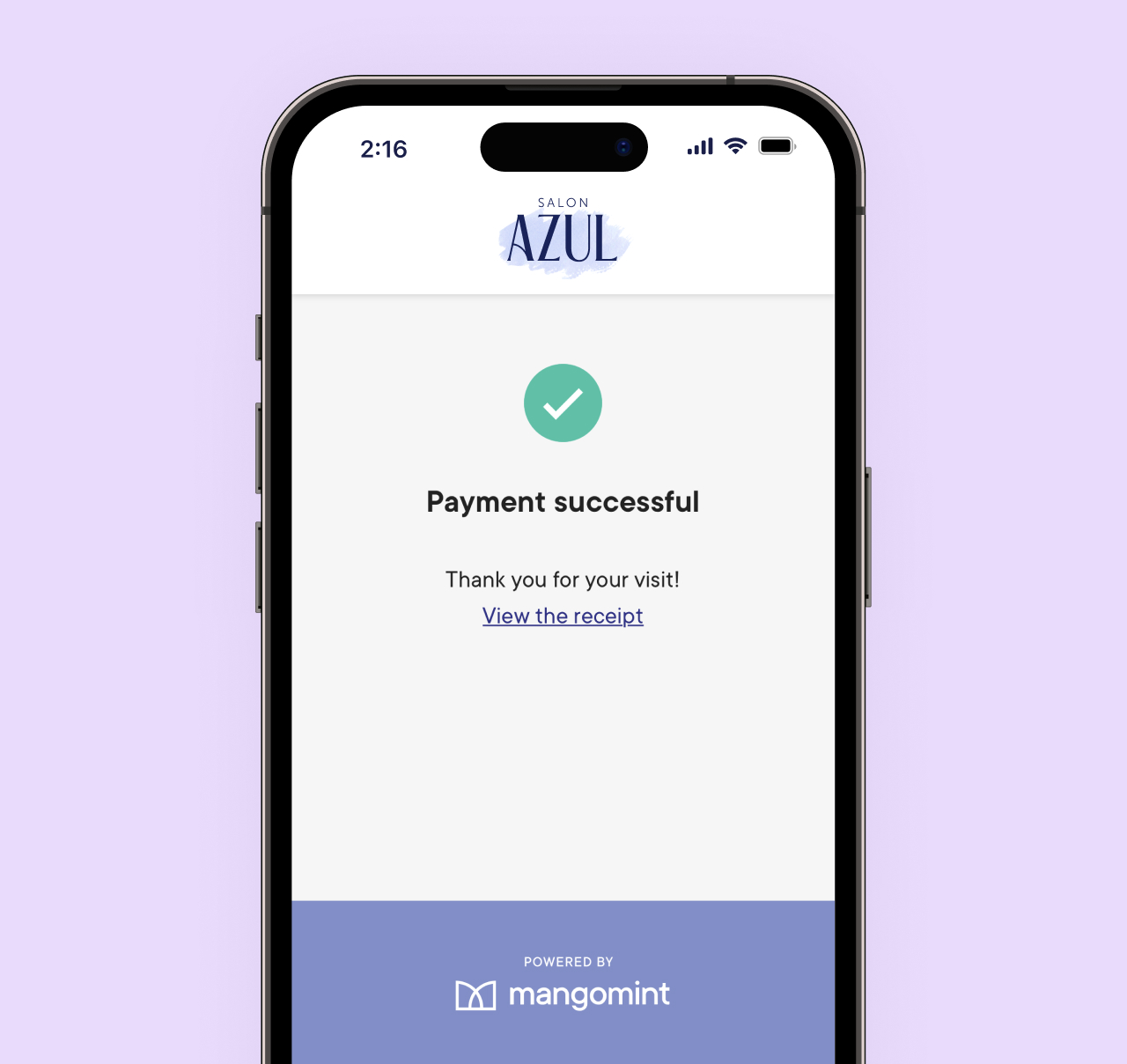 Once the payment is successful, the client will see a Payment successful message and a link to view their receipt.