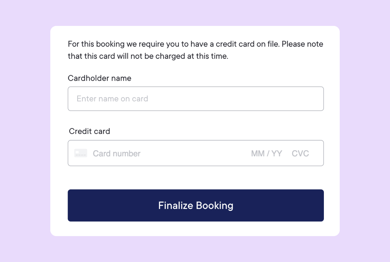 When enabled, clients will be required to enter their credit card information in online booking to book this service. This allows you to collect a credit card on file to charge any no-show or cancellation fees.