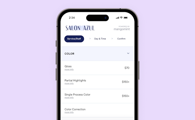 Hide price entirely: The service price (and service customization prices) will be hidden entirely. This is helpful for services such as hair extensions or color corrections that have variable pricing. If a deposit or pre-payment is required to book the service, that amount will not be hidden.