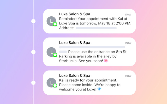 The articles in this section cover automated messages from the Settings app, including booking confirmations, appointment reminders, and more.