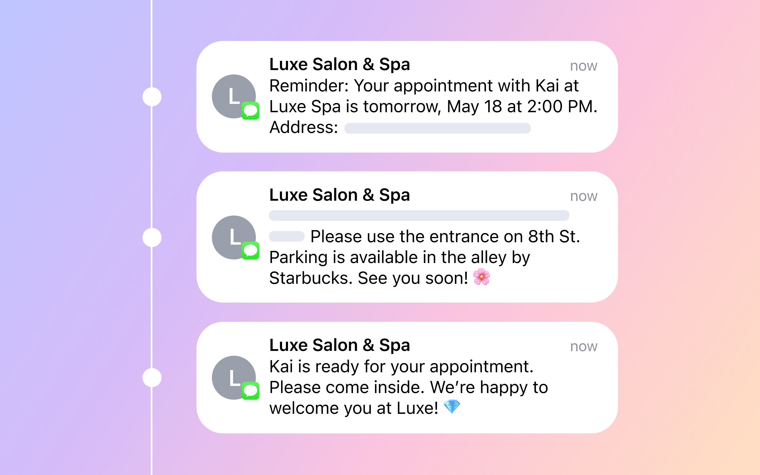 The articles in this section cover automated messages from the Settings app, including booking confirmations, appointment reminders, and more.