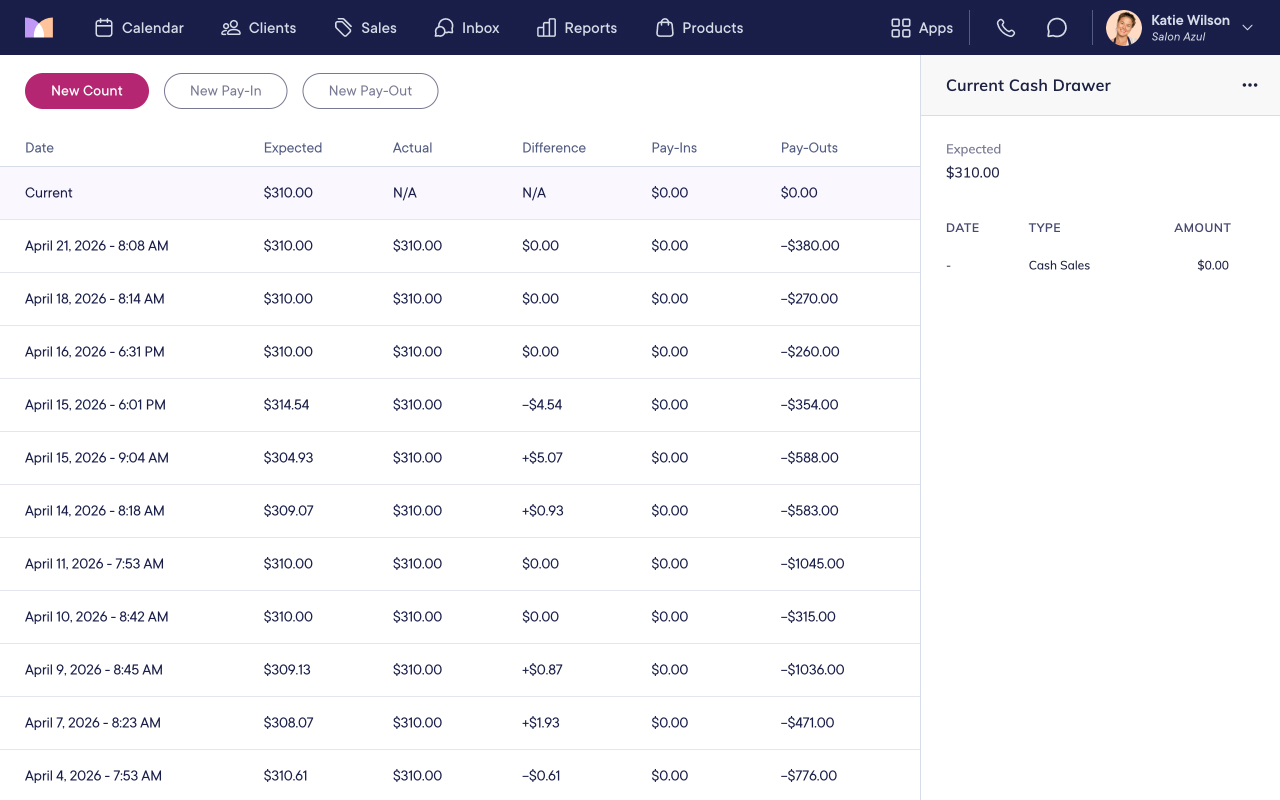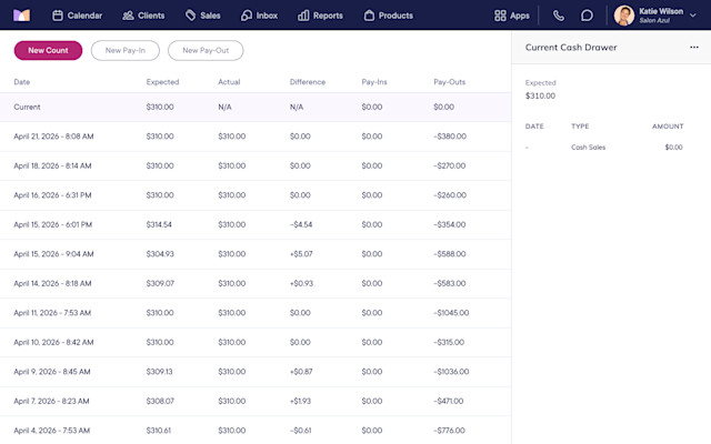 The articles in this section cover the cash drawer in Mangomint. The cash drawer helps you manage your cash sales. You can add new pay-ins and pay-outs, perform daily counts and closeouts, and pay out your staff's tips in cash.