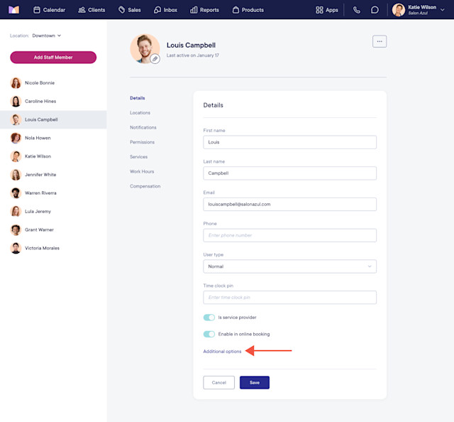 If certain staff members do not require a credit card, you can disable the credit card requirement for each staff member in the Staff Members app.