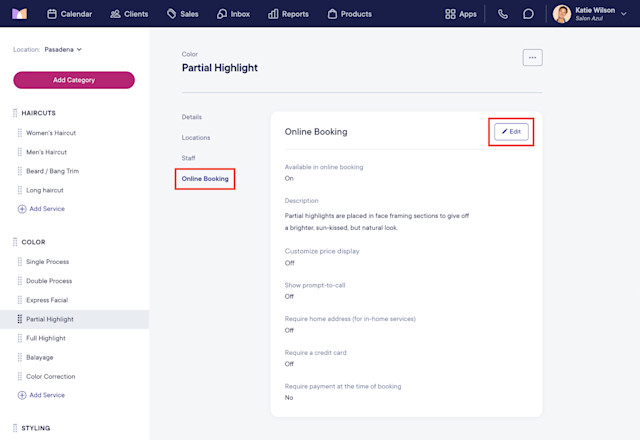 Select the Online Booking tab and select Edit.