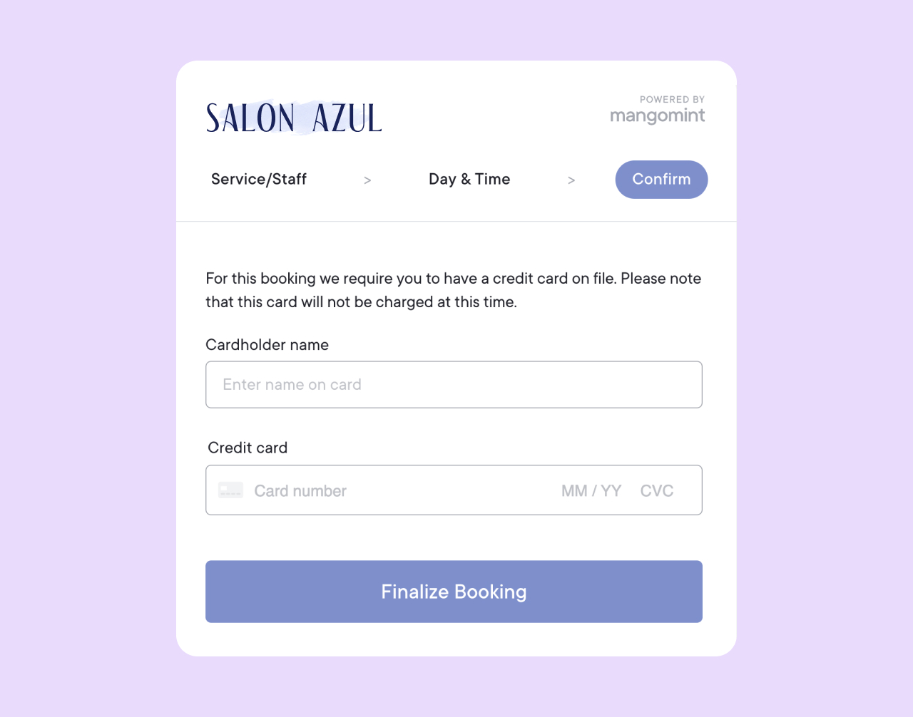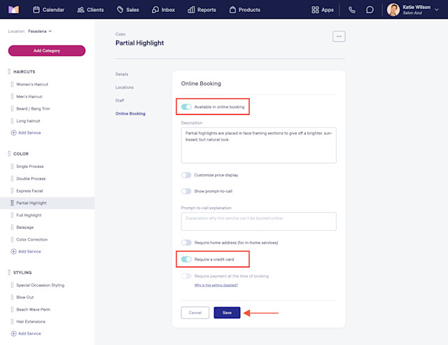You can require a credit card to book certain services via online booking. This can help you enforce your cancellation policy if needed.