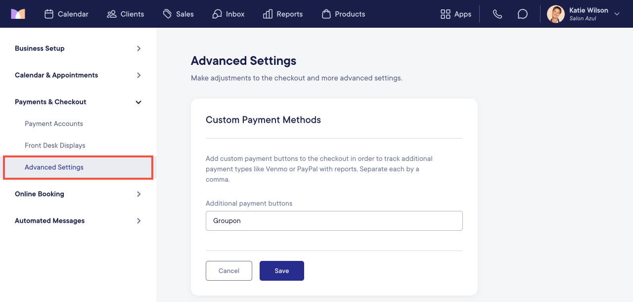 To track your Groupon sales, open the Settings app and go to Payments & Checkout > Advanced Settings > Custom Payment Methods to add a Groupon payment button.