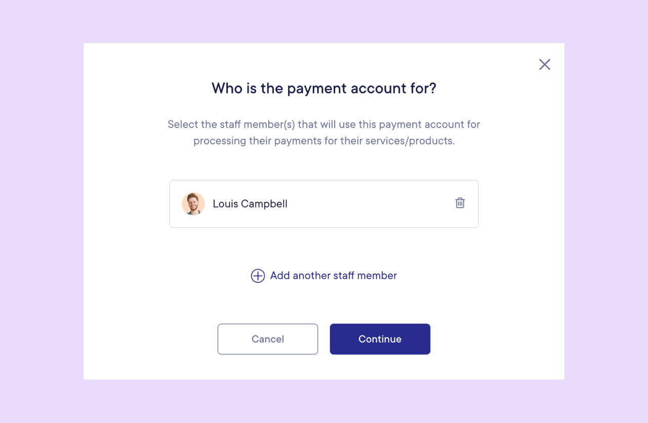 Enter a name for the payment account. If only one staff member is selected, the system will automatically use the staff member's name.