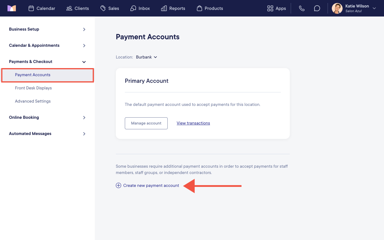 If you are an Admin user, you can create additional payment accounts for staff members. This is helpful for businesses that do not handle payments for independent contractors or booth renters.