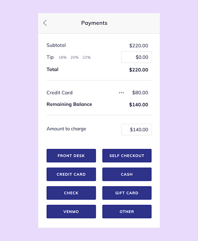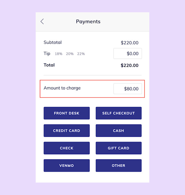 To collect a manual deposit for a client's appointment, begin the checkout for the appointment. This will create an open sale that will be closed once the appointment is completed.