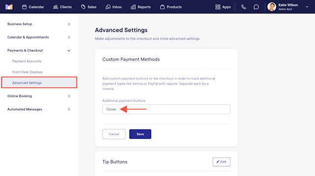 Once the payment is complete, update the sale in Mangomint with any tip/gratuity and select your custom payment button.