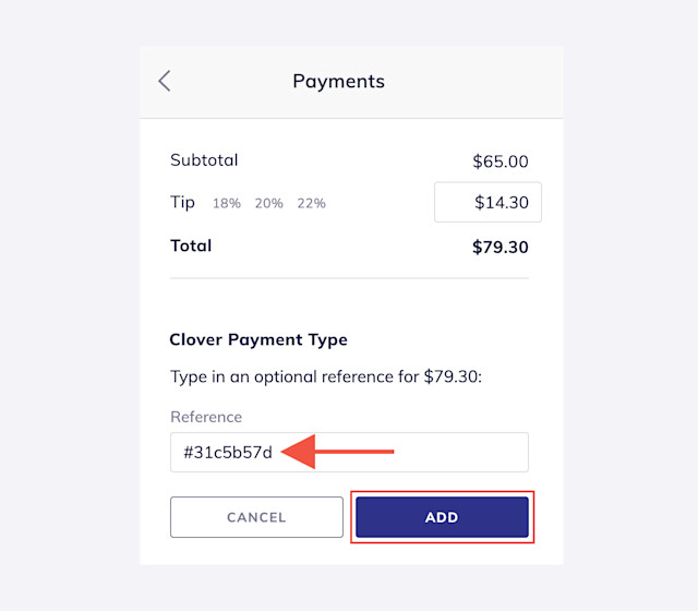 Enter an optional Reference number for the payment. Select Add to close the sale in Mangomint.