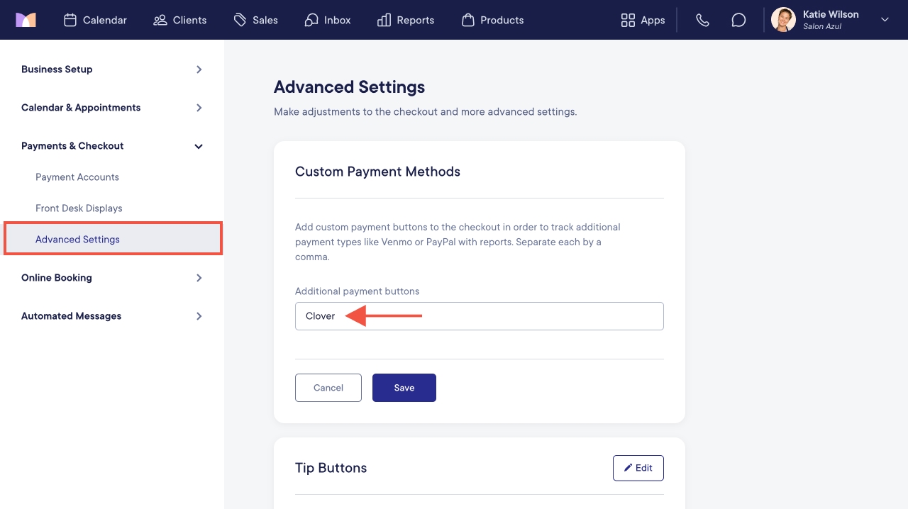 Once the payment is complete, update the sale in Mangomint with any tip/gratuity and select your custom payment button.
