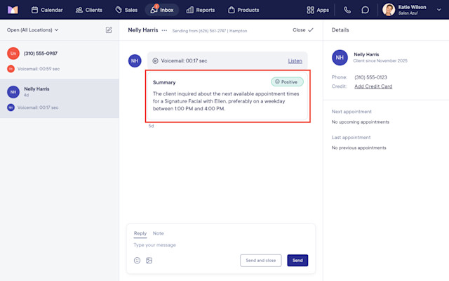 The voicemail will display an auto-generated summary, allowing staff members to see why the client called.