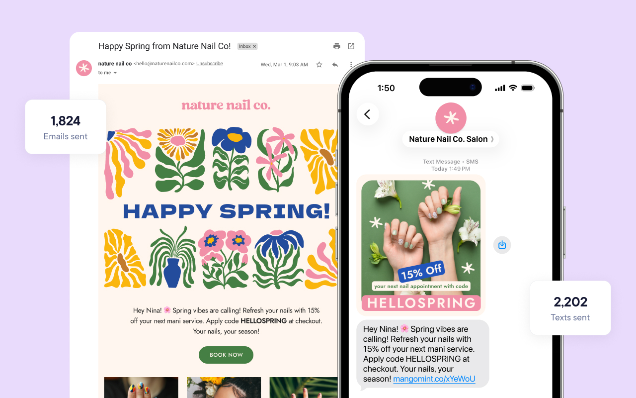Mangomint includes built-in marketing features to help you create and send personalized emails and text messages to your clients.