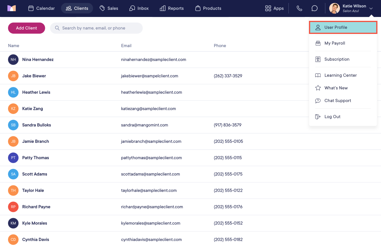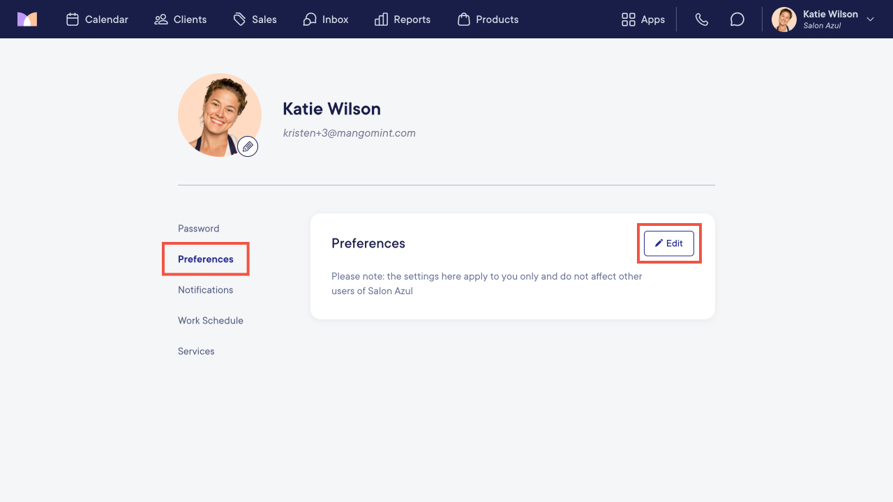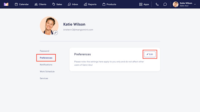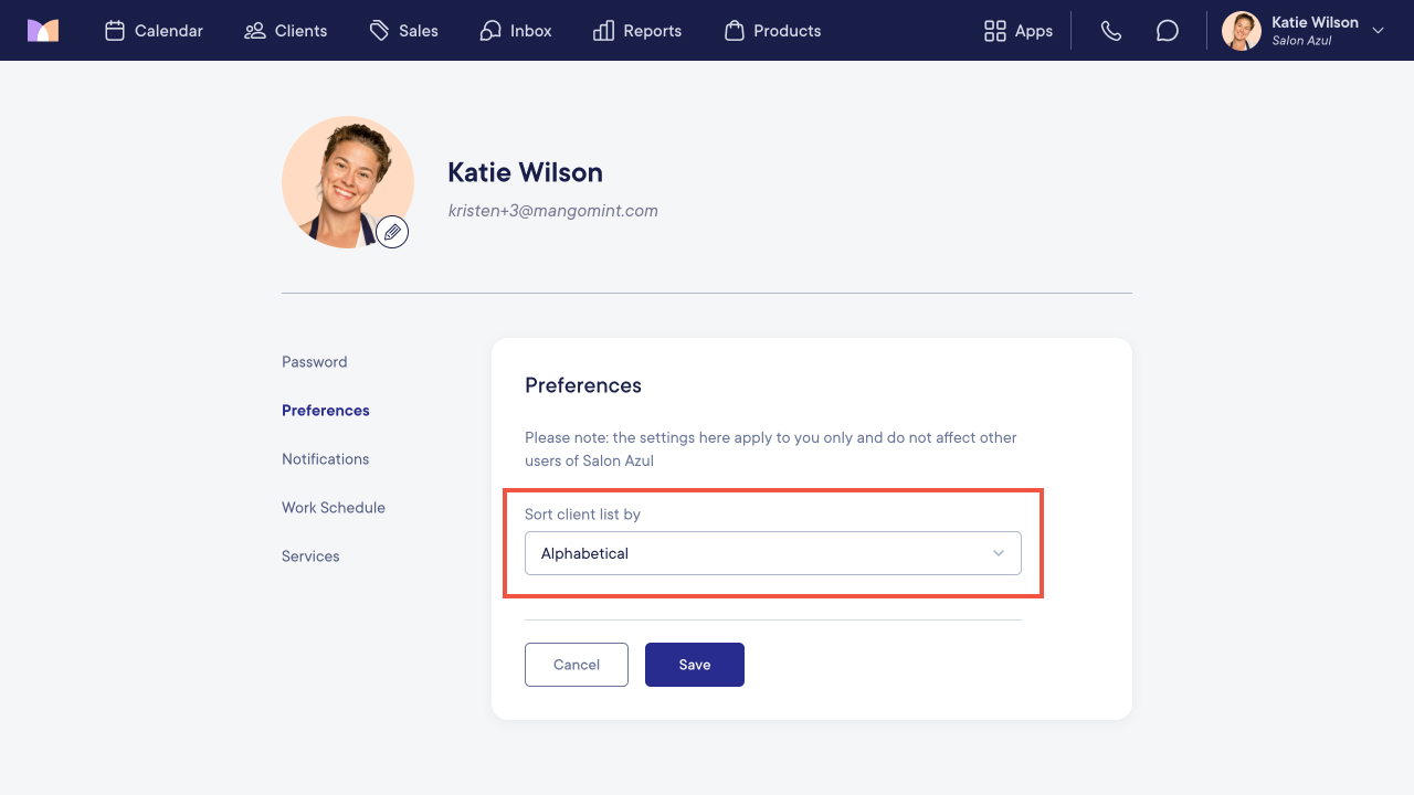 To sort the client list alphabetically, go to User Profile > Preferences and select Edit.