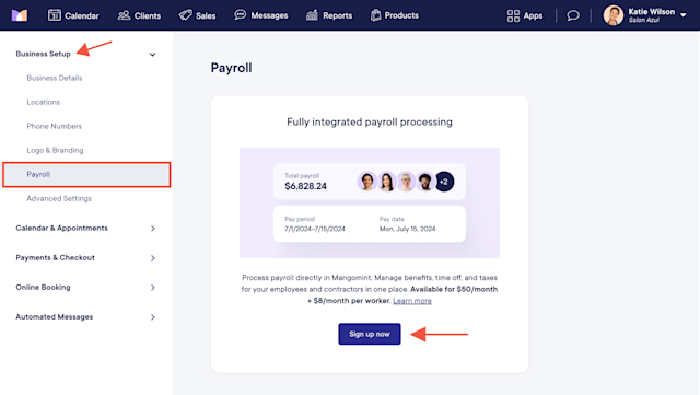 Once you’ve completed each section of the onboarding process and your workers’ payroll details have been set up, you can run payroll in Mangomint.