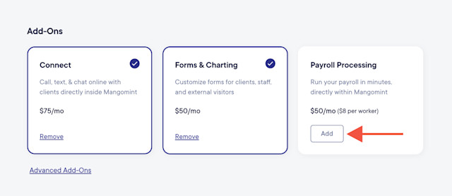 For Payroll Processing customers, you can select Change next to the Payroll Processing add-on to change the number of workers on your payroll.