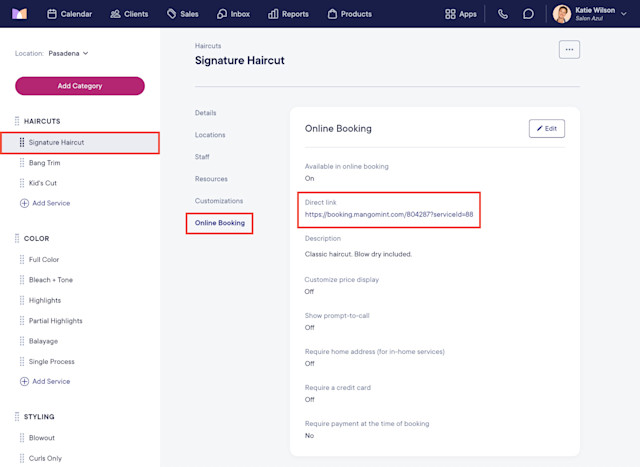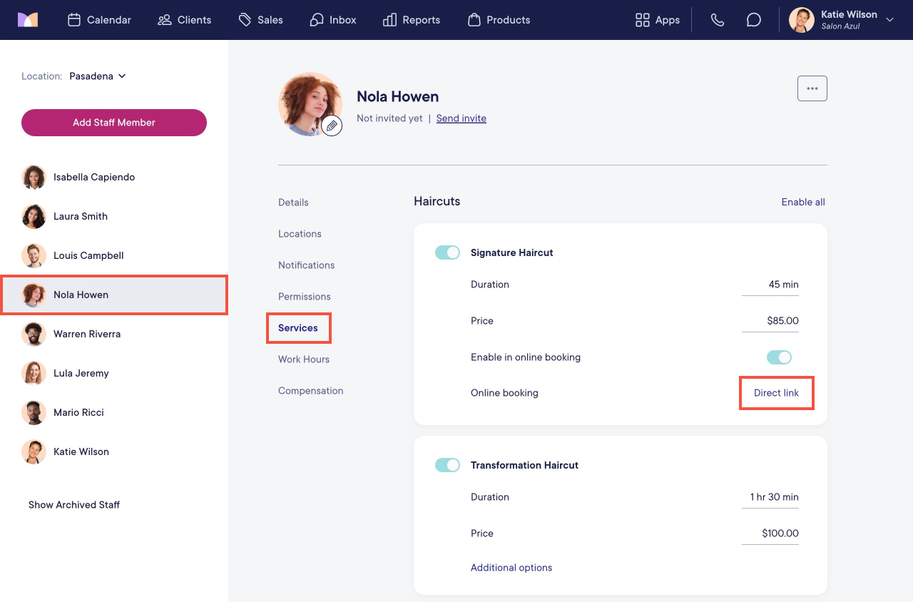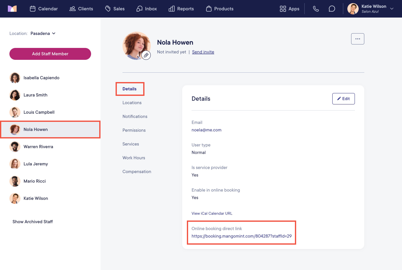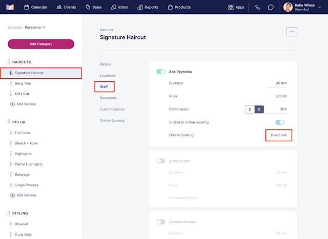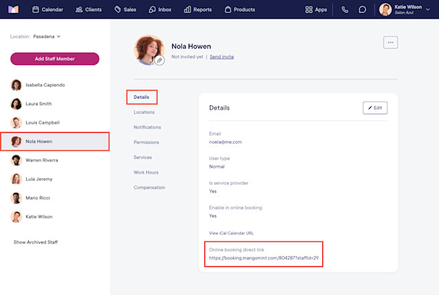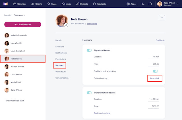 You can also go to Apps > Services > Staff to find the direct link for a service and staff member.
