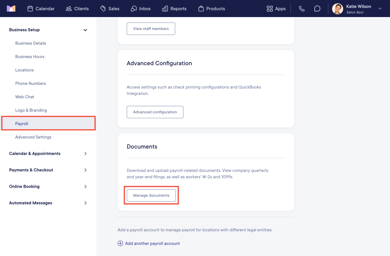 To view and download tax documents, open the Settings app and select Business Setup > Payroll > Manage documents. If you have multiple payroll accounts, select Manage account > Manage documents.
